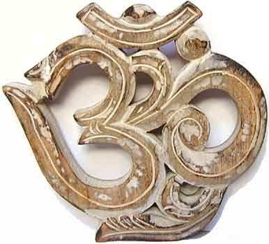 Das Mantra OM, aus Holz geschnitzt, zum Aufhängen